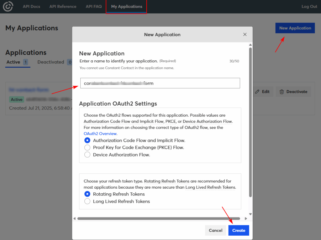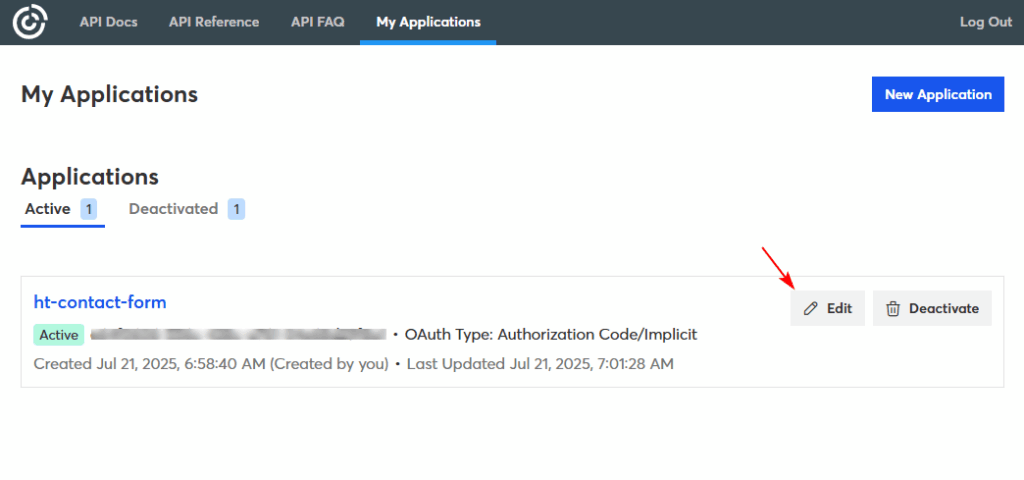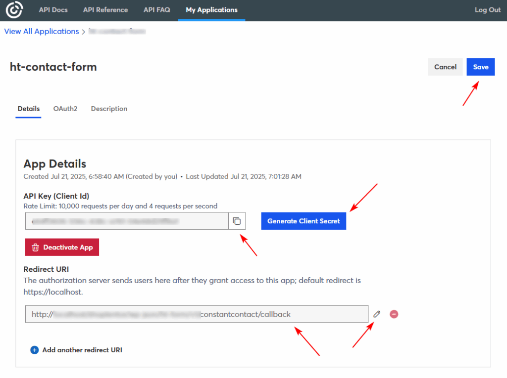 - Set the Redirect URI to: https://yourdomain.com/wp-json/ht-form/v1/constantcontact/callback