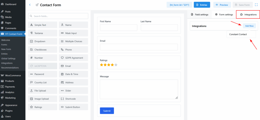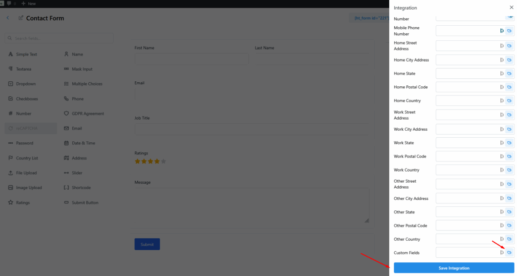 - Navigate to HT Contact Form → Integrations in your WordPress dashboard.