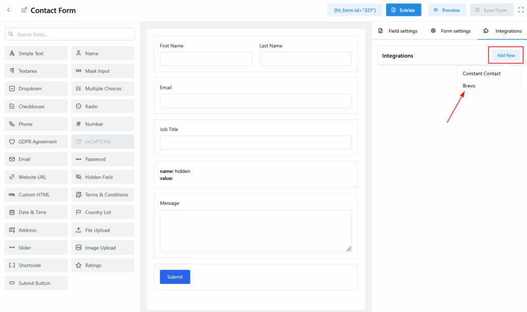 Step 2: Connect Brevo in HT Contact Form #