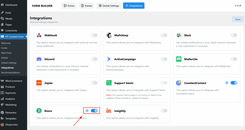 Step 3: Enable Brevo on a Form #