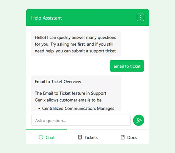 - BetterDocs: Connect your existing BetterDocs knowledge base with Support Genix and suggest relevant docs when customers create tickets.